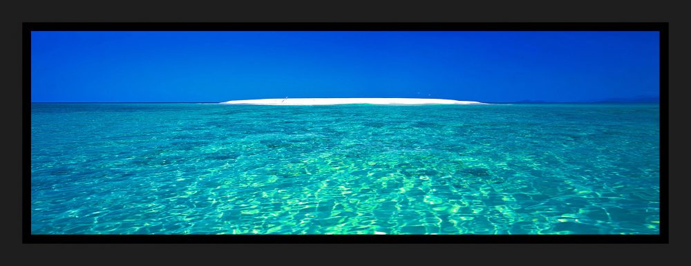 First, many thanks must go to my wife Michiko who sat patiently for over 13 hours whilst I photographed “Little Upolu”. I worked on the concept of white sand and blue reef waters with a human touch for a few months. This scene required a lot of planning, research, sketching and visualization before I photographed it. After considering the use of a helicopter, a plane and the (rather dangerous) possibility of climbing the sail mast of a yacht, I decided that a game fishing boat with a 45 foot high tower offered the greatest flexibility. My next task was to learn how to predict the perfect day in order to be sure that a game fishing boat would be available during the busy marlin fishing season. The first day that I worked on this photograph I wasn’t satisfied with the results so I chartered the boat again two weeks later.